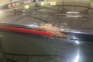 Grill är skadad. Skada på stötfångaren bak. Höger bakljus, småsprickor, Vänster bakljus, småsprickor, Flertal rostangrepp, lackskador, stenskott, dörruppslag och repor, Flertal lackskador. Bilen är delvis omlackerad, med bitvis dåligt utfört arbete. Förardörren kärvar. Värmeplåt för ljuddämparna bak sitter lös, ligger mot ljuddämparna
